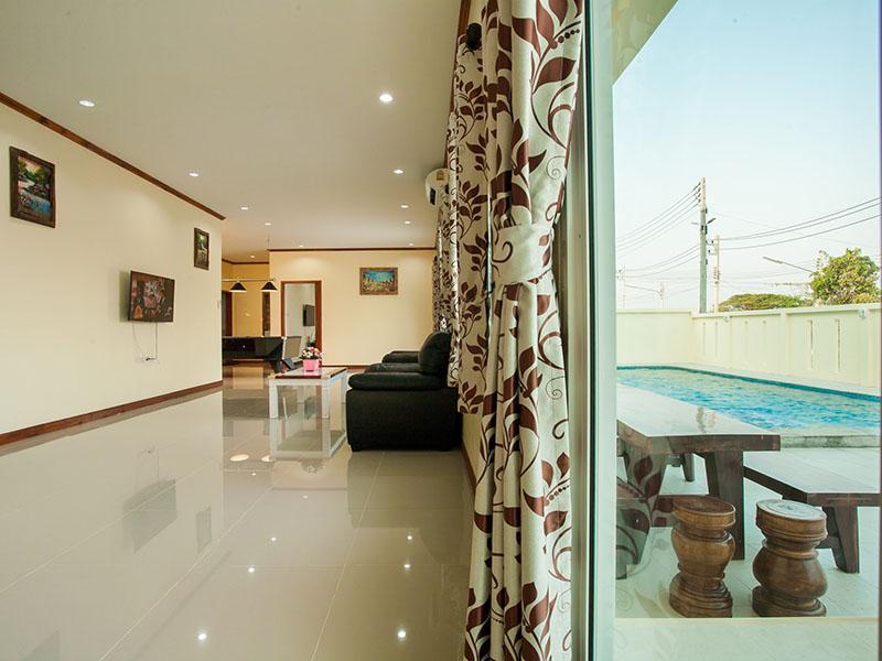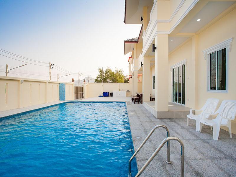 บ้านพักหัวหินสระว่ายน้ำส่วนตัวหลังนี้มีขนาด 6 ห้องนอน 6 ห้องน้ำ ตั้งอยู่ในซ.หัวหิน 102 ห่างจากทะเลเพียง 4 กิโลเมตร ใกล้ห้าง Blue Port ยังมี 7/11 อยู่หน้าปากซอยไว้คอยให้บริการอีกด้วย บ้านพักหลังนี้มีจุดเด่นอยู่ที่เป็นบ้านพักขนาดใหญ่ที่สามารถรองรับผู้เข้าพักได้ถึง 50 ท่าน อีกทั้งยังมีทำเลที่ดีและมีการตกแต่งที่พักได้อย่างหรูหราสวยงามอีกด้วย ภายในบ้านพักมีการตกแต่งที่หรูหราสวยงาม มาพร้อมด้วยสิ่งอำนวยความสะดวกต่างๆ เช่นเป็นห้องแอร์ทั้งหลัง มีเตียงขนาด 6 ฟุต 8 เตียง มีทีวี สามารถเสียงดังได้ทั้งคืนที่สำคัญ มีคาราโอเกะติดสระว่ายน้ำพร้อมไฟเทคเตรียมไว้อีกด้วย ภายนอกบ้านพักยังมี สระว่ายน้ำส่วนตัว Jacuzzi ขนาด 7*12 เมตร ที่ระดับความลึก 1.3-1.7 เมตร มีสระเด็กลึก 80 Cm. ฟรีลูกบอลสีในสระว่ายน้ำ โต๊ะพูล ฟรีWifi มีเตาปิ้งย่างไว้สำหรับปาร์ตี้ อีกด้วย